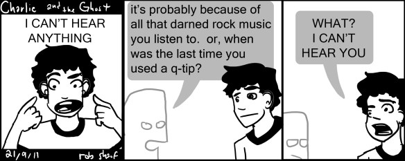 one of my biggest fears is that i will go slightly deaf in one of my ears, just slightly, so that what I hear in one ear is like a semi-tone off, so music will forever sound absolutely terrible. It happened once with my headphones; it was late at night, my computer had been doing video work all day and was running a little hot, and I noticed that in my headphones, one headphone wasn’t playing the music right and the other one was, and it was so dissonent and terrible… And I was freaking out i thought i was losing my mind. But then I rebooted and everything was SWELL.