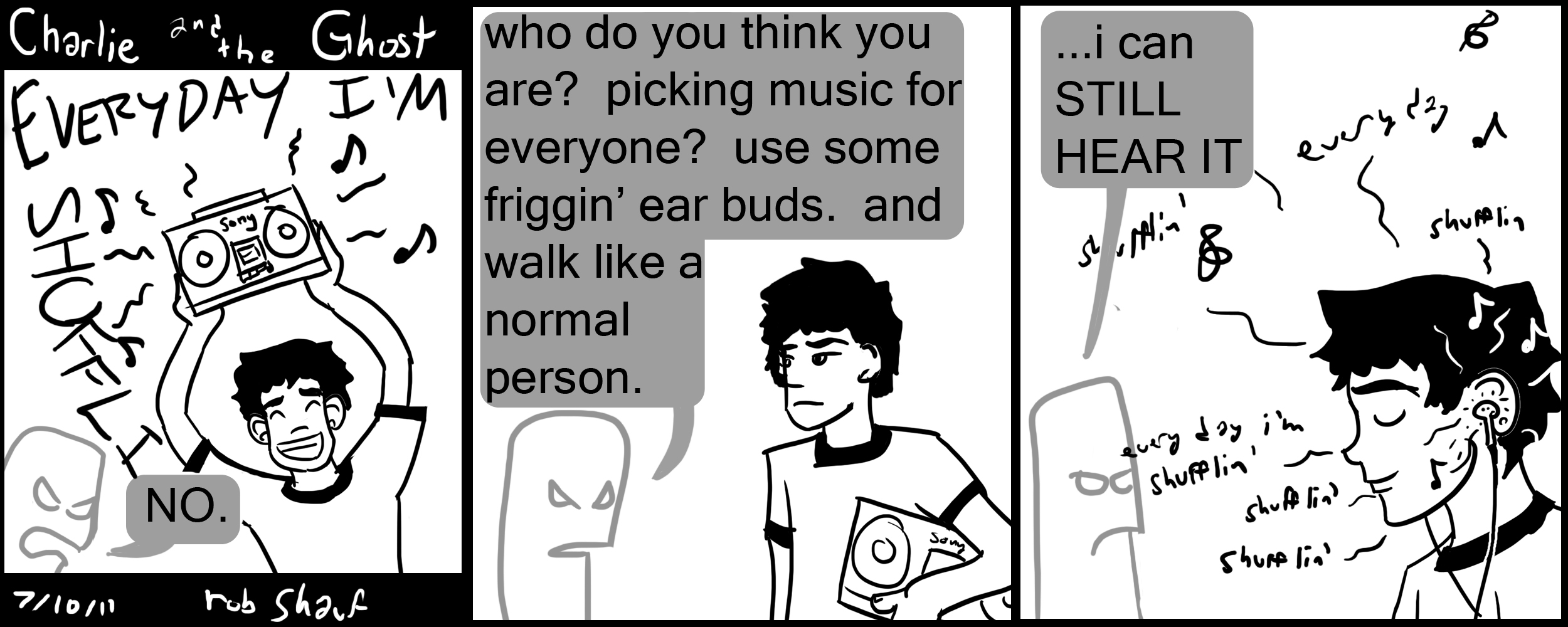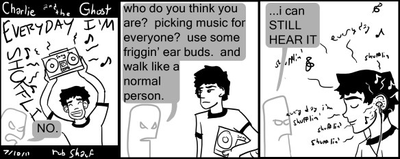 I know this song is sorta old now, but seriously, the problem of people’s earbuds being too loud will never go away. Here’s the thing: It would be LESS OBNOXIOUS to walk around with a ghettoblaster/boom box/whatever cool people call them nowadays blasting on full volume, then to walk around with super loud earbuds. WHY? loud earbuds + the human skull + a room full of people surrounding the ear budded person = a song absolutely devoid of bass or mids for EVERYONE who is standing around the annoying person with earbuds. That means that if it’s a dance song, 100% of the good parts can’t be heard, and all we can hear is the annoying whistle-y parts and the “tss tss tss” of the synth-high hat, and the odd lyric. THE WORST.
