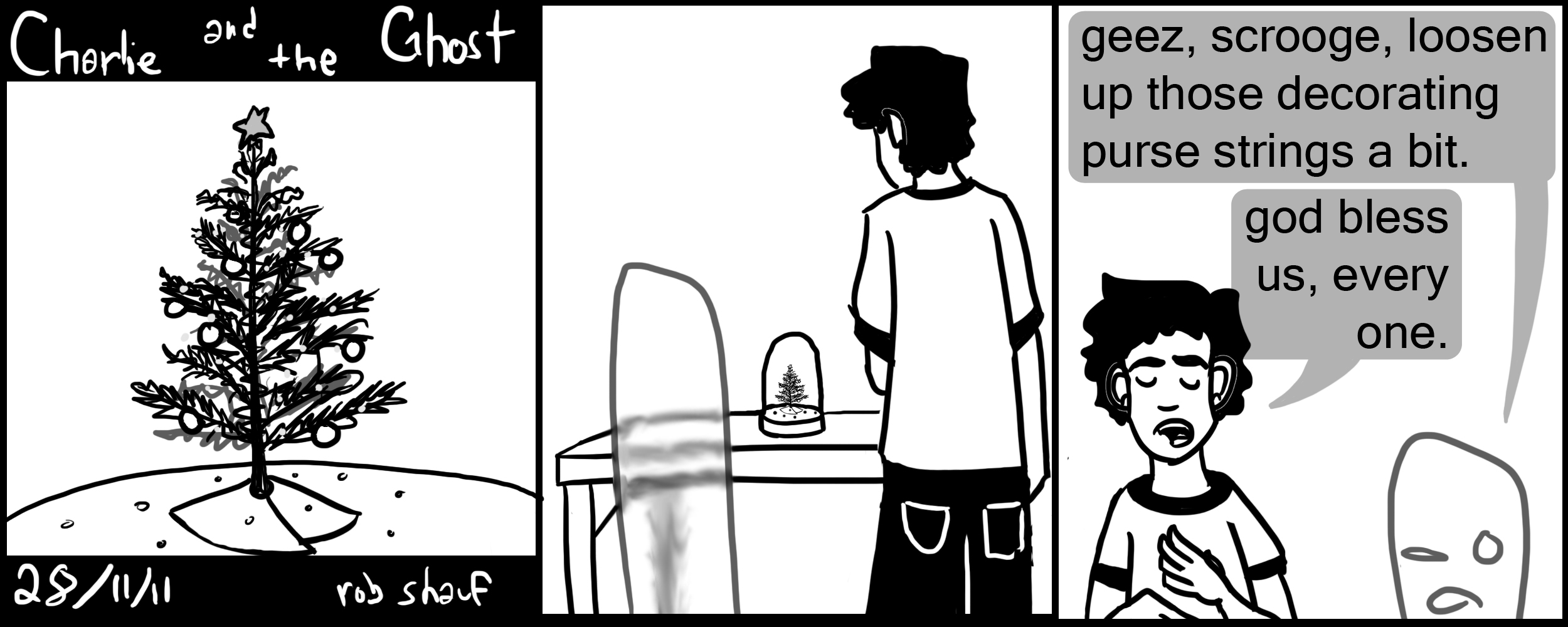 that being said, there is this video i saw a couple weeks back, i can’t remember what it was called, but it talked about how if north america alone stopped spending money on christmas presents/decorations/plane tickets/etc, and instead just had a normal day, and spent that money on finding ways of providing clean water to the whole world, that the whole world would have clean water and there would be a stupid huge surplus left over, like finance a small country stupid huge, that could be used to tackle other world problems. Pretty crazy. I think it’s called like “advent conspiracy” or something.
