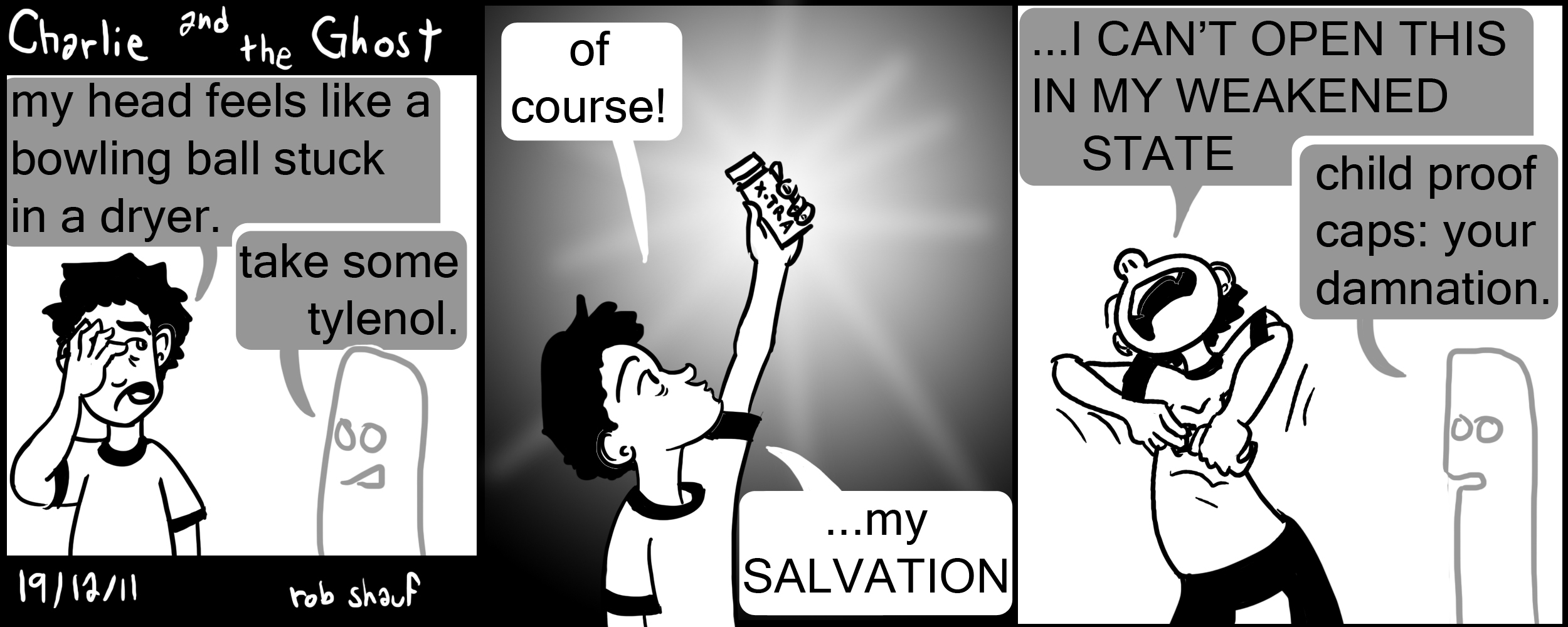 I can feel my heart beat! in my CRANIUM. that can’t be good. darn those child-proof caps. lids? pill bottles.