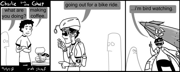 In the first panel, there is a coffee syphon, or a vacuum coffee maker. If you’ve never seen one, now you’ve seen an illustrated one anyways. I will say three things about them: