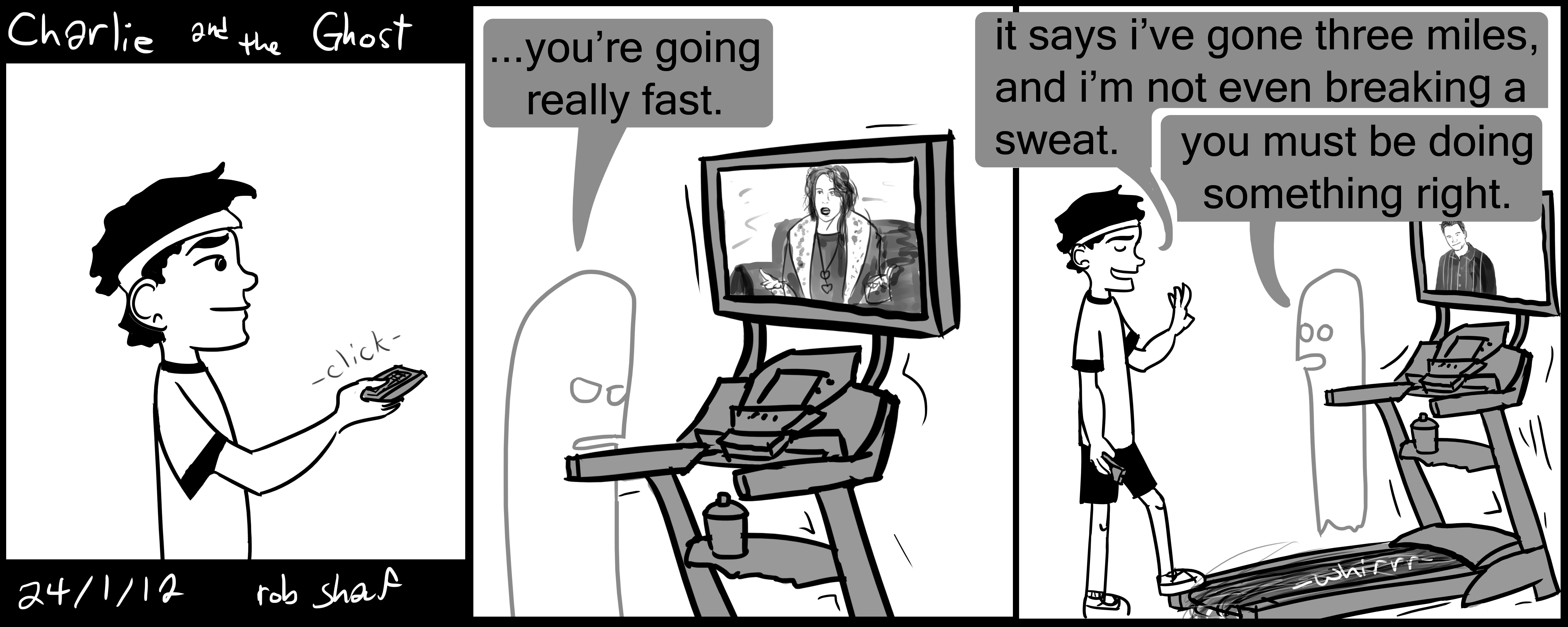 Inspired by last night’s gym extravaganza. I’m running on a tread mill. Diana KILLS me on the tread mill, always, as she can run forever on that friggin thing. Her “total distance” is always like, at least half a mile further than mine. Anyways, so we’re trying to get the TV on her tread mill working, and she’s standing with both feet on either side of the tread mill’s belt, and to my horror, her tread mill kept COUNTING the stand time as DISTANCE! and she had it set at a highish speed! for at least a fifth of a mile. that’s like, FREE distance. FREE calories on the calorimeter.