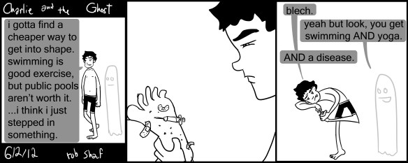 Apparently I should rename “Charlie and the ghost” to “Charlie goes to the leisure centre and complains about things”. But SERIOUSLY…. Leisure centres. Before you teach us about improving our body and our body image, let me teach you something about ACTUALLY CLEANING the floors. Granted, the pool is mostly water, and you can clean that with chlorine, but the REST of your facility is notably not water, and needs to be swept/mopped/CLEANED once in a friggin’ while.