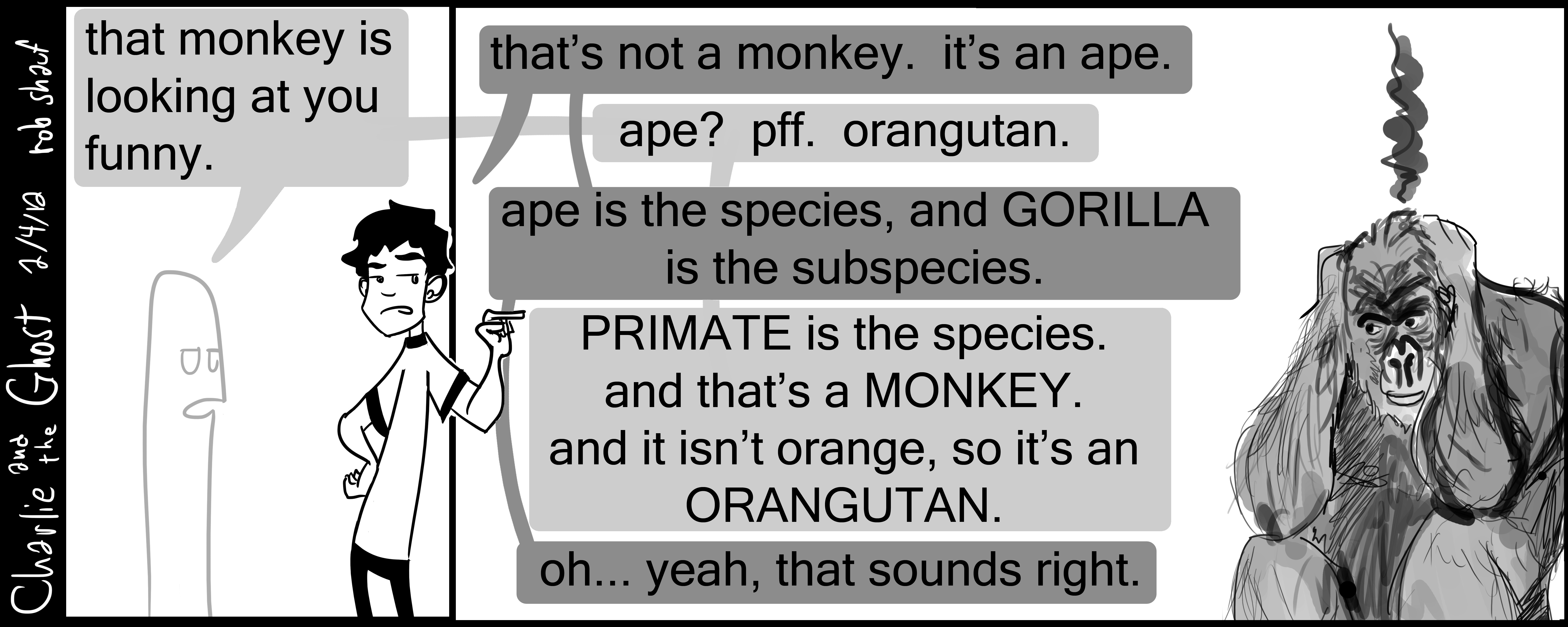 Also, i really don’t understand the whole monkey/ape/primate debacle.