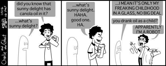 I saw sunny d on the shelves in super store recently, and i was like, “Hey! I remember drinking this as a child. It always went down so smooth!” and so I was about to sneak it into the cart when i thought, “Hey, i’ll check the ingredients.” and I was appalled. I mean, it’s probably better then drinking a cup of sugar dissolved into half a cup of soda water, but i just got to remembering how that vile drink would coat the back of my throat, and reading those two words…. Reading the ingredients, everything began to make sense. Anyways, i think it’s pretty gross to say the least.