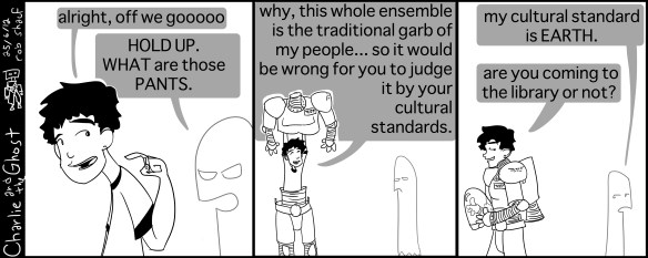So on the weekend, I got to see friends get married, which is always a good time! In between the ceremony and reception, got to have coffee with some friends, and the topic of LARPing came up. Good ol’ Live Action Role Playing. There is this game I really REALLY want to get people together and play, called artemis (you and five friends command the bridge of a star ship). Anyways, it’s a video game, but you can enhance the experience by geeking out a bit. we started talking about dressing up to play it… mostly joking, but as i thought about it, the game basically is live action role playing. And it got me to thinking… people dress up to go to graduation, a wedding, the pub, to go to a show, to go out with their friends… to go to the beach… people go to concerts and dress in scene clothes they might not normally dress in; people go to gun shows and wear camo. these things are all normal and expected… but the second a guy wants to dress up in a star trek uniform to play a star trek game, that’s icky? nope, it’s not weird. you wouldn’t go to the bank wearing a mascot costume, you’d go to the football game… provided you were the team’s mascot. you wear clothing appropriate to the situation. Anyways… LIGHTNING BOLT LIGHTNING BOLT