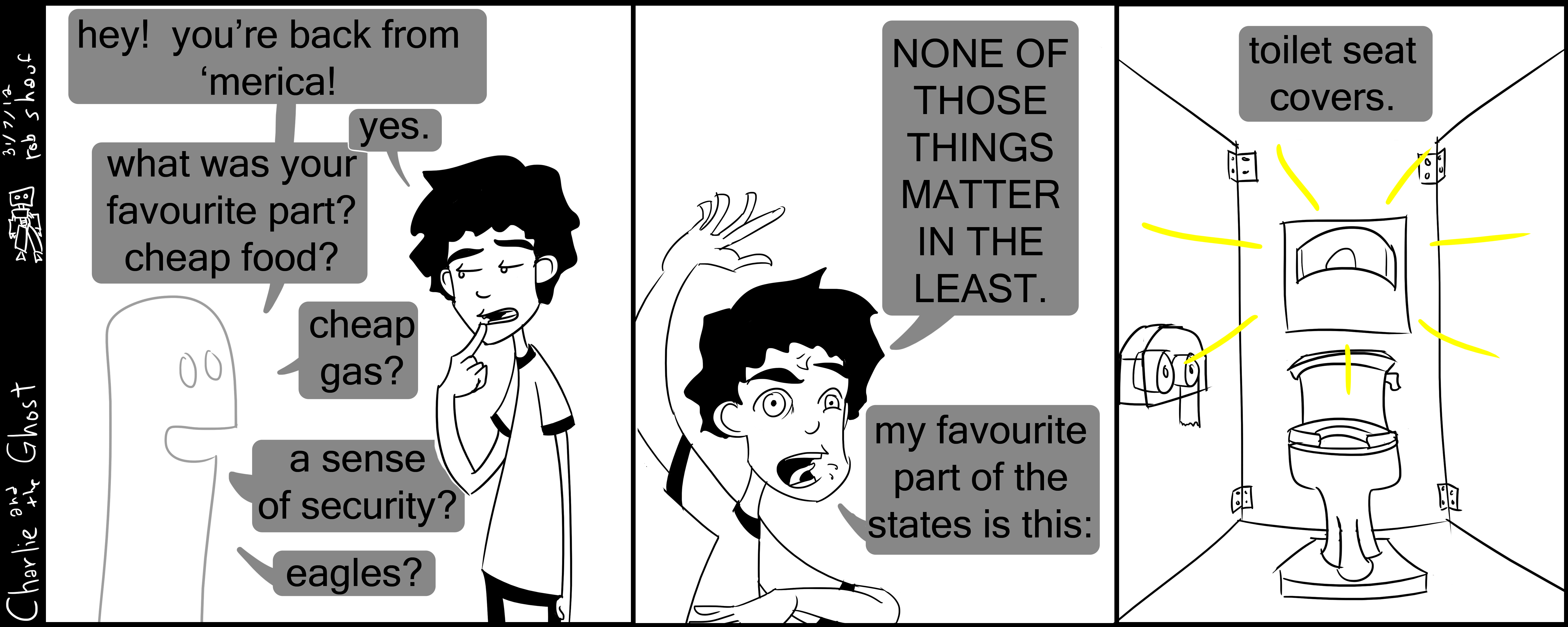 San Fran was Awesome. So much happened! So many very good things. That being the longest i’ve spent in succession in america (at least, to the best of my knowledge, i don’t think i’ve spent 10 days in the states before… maybe like four or five…) I can safely say that this time around, I have determined my favourite part. I REALLY hate public washrooms, but in the states, my phobias are gone! I can poo in peace. Except for that one time I got threatened by a vietnam war vet when i was using the urinal… that wasn’t fun, but i mean, that’s gonna happen. Come to church on sunday if you want to hear a bit of what God is doing in San Fran! Other then that, America: I have a new found respect for your standards of public sanitation.