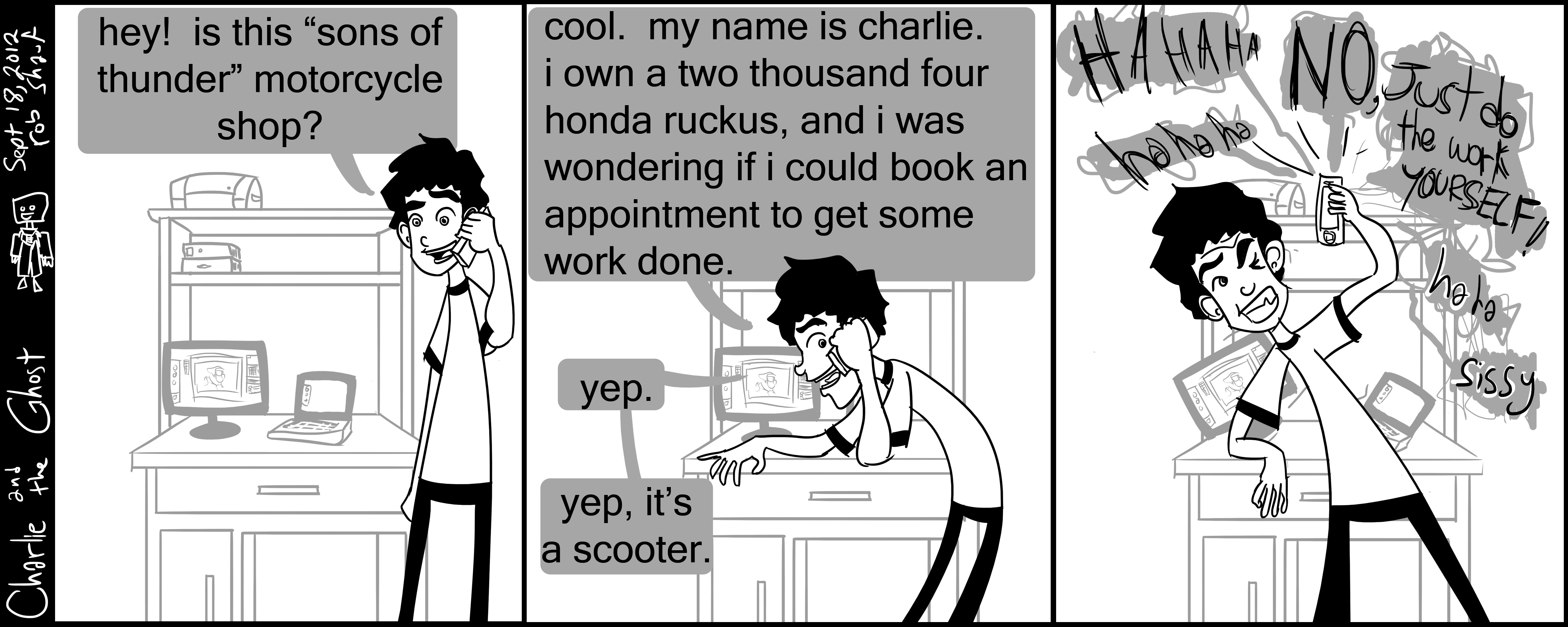 I shoulda known by the name of the shop that they probably were a little rough around the edges… possibly even neo-nazis, as neo-nazis tend to adopt scandinavian mythology… I doubt that though, that would be a little bold naming your shop that if you were. Anyways, being a non-mechanically inclined guy who currently resides in an apartment without any type of garage or workspace to claim as my own, it becomes necessary to find a shop to do things for me… I have yet to find a shop that will take my money. Most people look at the poor ruckus like a toy; even the dealership that sells them new here in Chilliwack highly encourages people to “do the maintenance themselves, it’s simple enough”. If you live in a bigger city, such as vancouver or victoria, there are whole shops dedicated SOLELY to scooter maintenance, and whole communities dedicated to riding together and hanging out and being rad on scooters… But in Chilliwack, the address for our scooter shop turns up two options: nothing, or a really sketchy looking shop where it seems people would be just as likely to steal parts off the thing as they would to fix it. We’re talking serial numbers filed off of product sketchy.