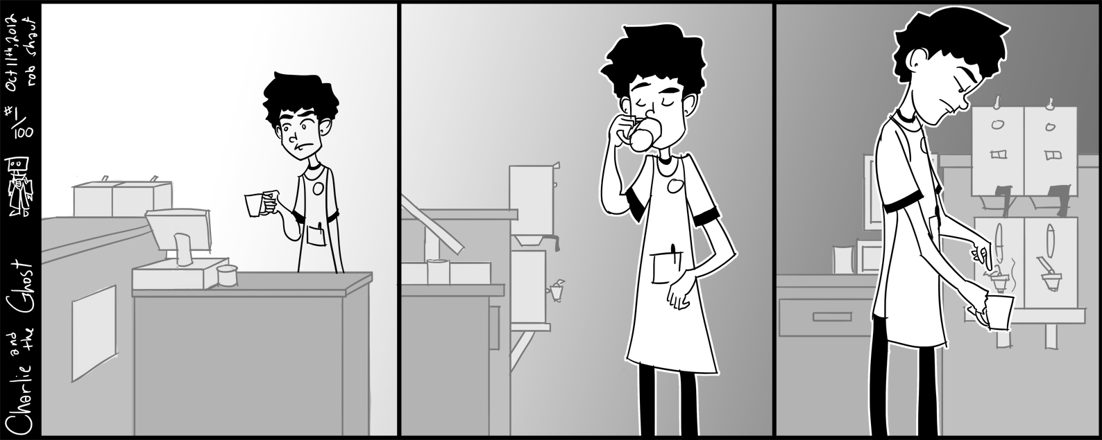 So! Post-400, for the next one hundred strips, I’m gonna try something a little different! On mornings like this morning, when I am absolutely exhausted and have zero motivation, it’s helpful to have some framework in place to make sure I can draw. That framework is going to be… Narrative! I am hoping to tell a story in the next 100 strips. I’ve done it before, for 10 strips or so, with the girl? and the gas station? But ten is not one hundred. I hope you’ll stick around and wait it out! I think you’ll like where it goes.
