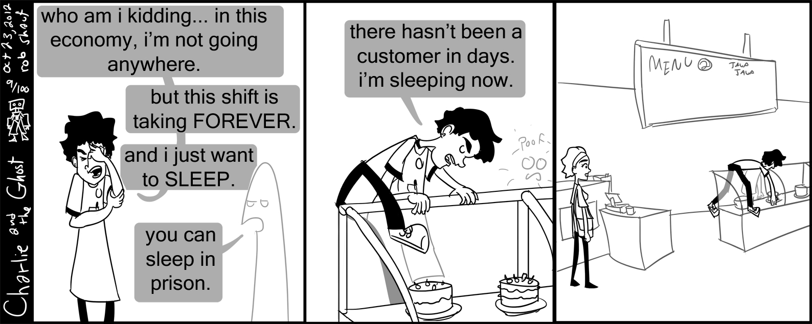 Sometimes, when time is passing more slowly then it should, and our minds go to places normally reserved for the criminally insane, it’s best just to go to sleep. Well, that, or drink a lot of coffee, because coffee drinking does two things: It makes your mind work, and it absolutely helps to calm a person down. Er- wait… maybe not that second one.