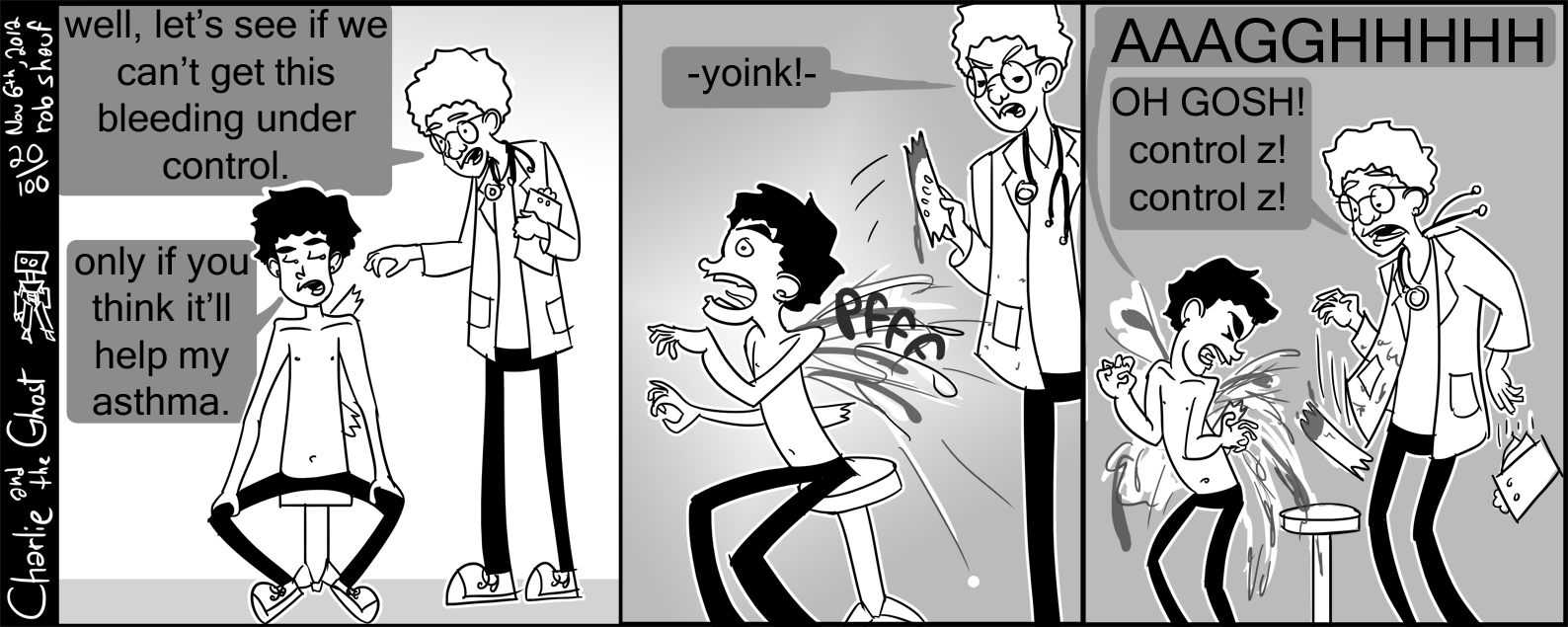 So one of the things that is really nice about drawing in software instead of on paper is all of the options a guy like me has for editing! I haven’t drawn on paper for a real project in a very long time, i’ve been drawing everything straight in photoshop or pixelmator or Anime studio pro probably for a year or two. It is faster then drawing on paper, inking it, scanning it, cleaning it, and then being able to post it… But it’s strange, as good as I think I am getting at digital doodles, i’m always going to be better at drawing at paper… well, accept on a bad drawing day, which is really where the software comes in really handy to stretch and rotate stuff in the initial sketch until it looks some-what right. Why am I writing this? Cause the other day, I did go to draw on paper, just a pretty simple drawing of a person standing there, and I was incredibly frustrated when I couldn’t rotate and shrink the head of the person I had drawn just a little too large. It’s like when little i-pad savvy kids are frustrated by the lack of touch screen controls on their plasma TVs… you get so used to the tools you’re given!