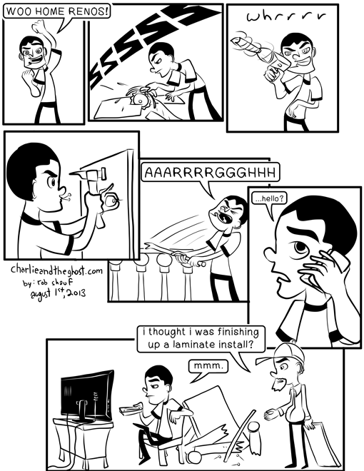 So this weekend is a couple things… Coffee-dog is getting her reproductive parts removed, and our floor in the family room is changing from carpet to laminate. I only have enough money to hire a professional for one of the two tasks… here’s hoping that spaying a dog is as easy as the TV shows on “OLN” make it look.