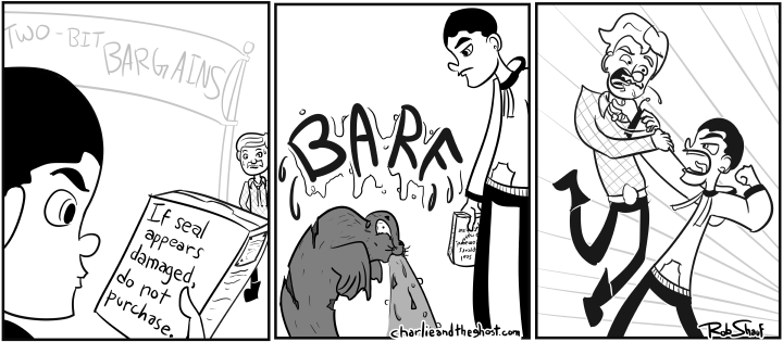 So in pokemon society, kids and adults alike have basically embraced dog fighting/rooster fighting/that’s actually a pretty terrifying world to live in. That is part of the inspiration of today’s strange comic. The other part is just the strange warning found on everything from juice boxes to cereal boxes to anything… you would think this would be an obvious “buyer beware” type of thing.