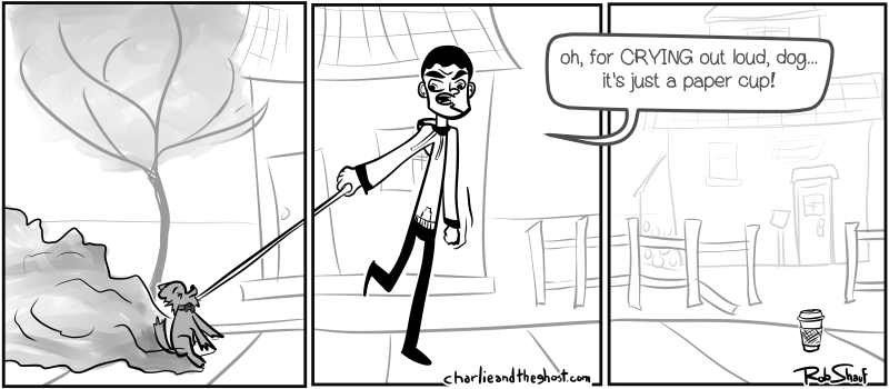true story. I think my dog is inventing things to be afraid of. What is scary about a discarded extra large tim hortons cup, standing like a monolith, completely alone, in the middle of the sidewalk? I’m not saying I DIDN’T think there may have been a bomb in it myself, but it didn’t stop me from walking past it. Each day is an exercise in new fear when you are a tiny dog.