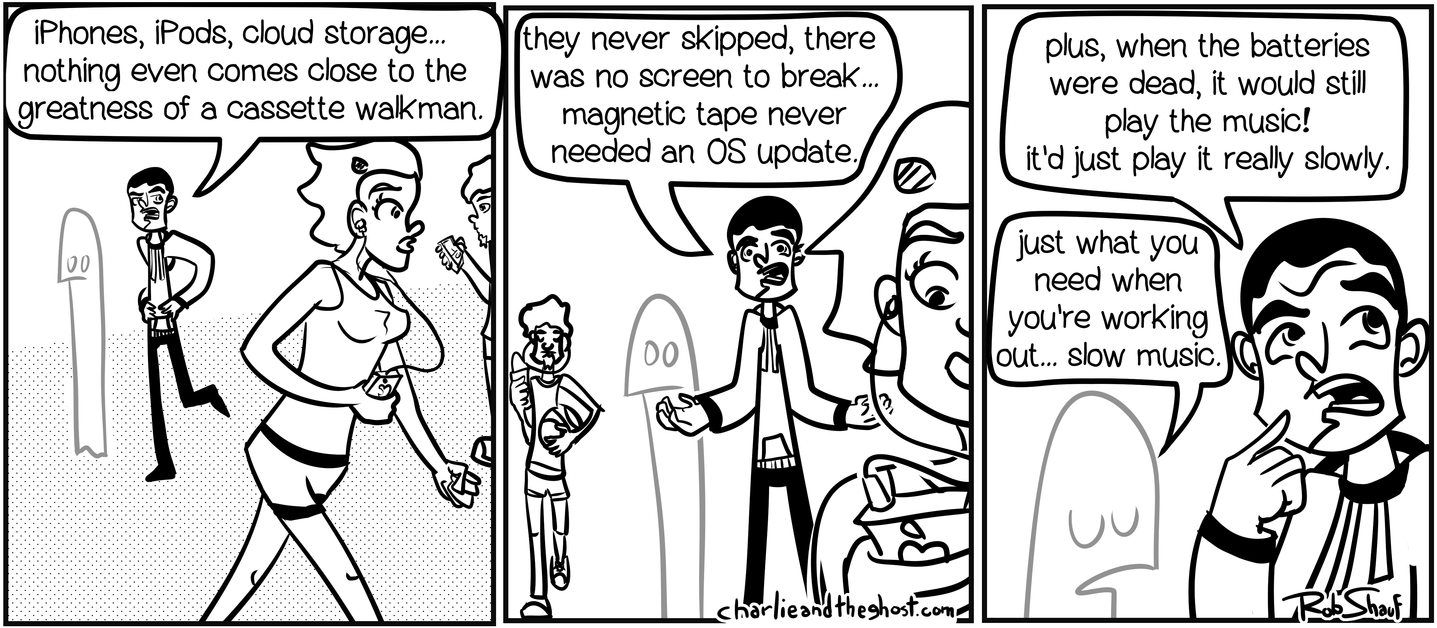 1) you could buy tape players for pretty cheap, so breaking them during a workout was a non-issue