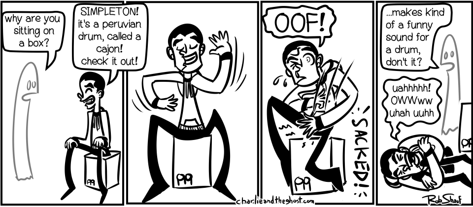 If you’ve never seen a cajón, i’ll quickly explain what it is. It’s a wooden box, made of various thickness’s of plywood, with a snare (metal beads) stretched across one panel and a sound hole on one panel. We just got one, and I gotta say, I like it a lot better the djimbe’s or congas or bongos. You can get a lot of sound out of an instrument so simple, depending on where and how you hit the thing. i think with some practice it would be sounding close enough to a kick drum and a snare drum that I would prefer to use it at camps and on trips and stuff. Much easier to transport! Plus, it doubles as a chair!