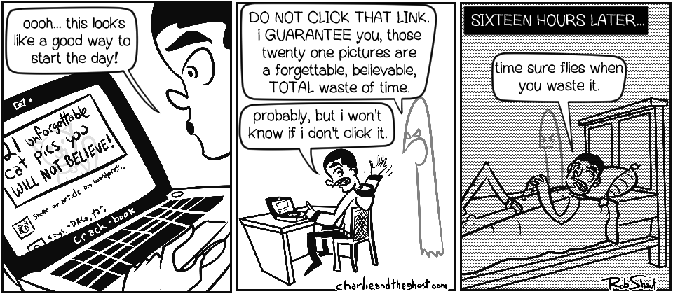 ugh. I get sucked into those stupid headlines and blog titles EVERY TIME. When I am doing a quick scroll-through, for every one piece of information I actually care about, I scroll past fifteen buzzfeed and huffington post and whatever articles all with a variation on the same title. The worst part is, I fall for it every time. I have to remind myself, actually TAKE A SECOND and say to myself, “no. this will not be an interesting article, it’s just a re-hash of old memes.”