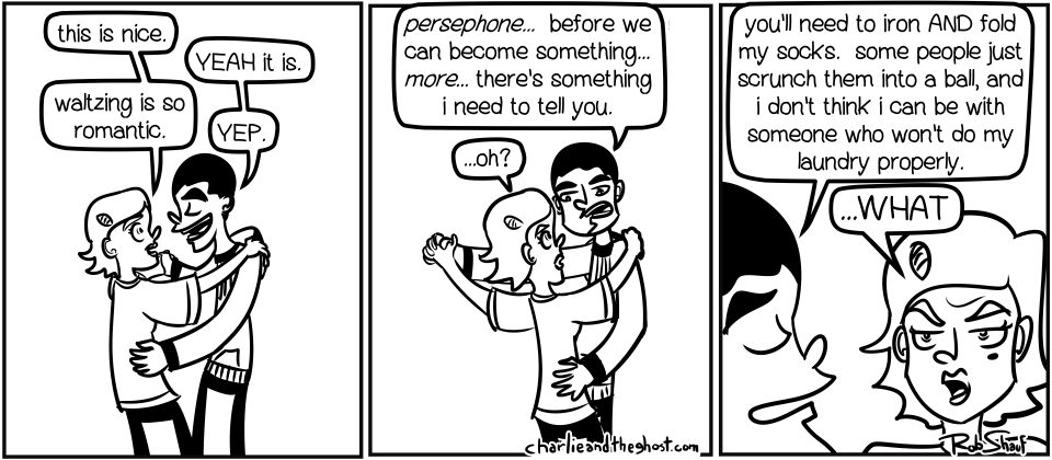Is this funny, or sad? I think a lot of people see romance as a means to an end, and that end isn’t always healthy relational intimacy. I wouldn’t be surprised if most people could put one or two of their own lines they’ve said or had said to them in Charlie’s last speech bubble and make this comic into a true story.