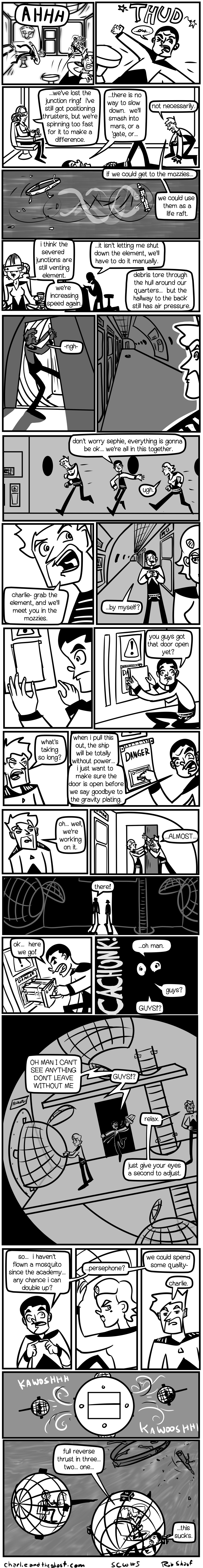 and so, the next five pages of spacechuck! I hope you guys are enjoying it! it’s fun to draw this much for sure. When I was drawing and updating daily, If it took me an hour to make the strip, probably only twenty minutes was actually drawing. But because I have this written out for the most part, I get to spend much more time drawing! it’s very enjoyable.