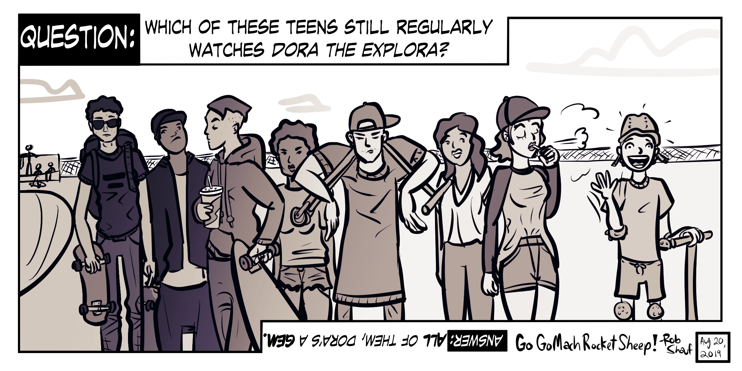 I once spoke at a high school and mentioned how my daughters were just getting into Dora the Explora, and everybody went wild. I feel like, when I was a kid, everybody watched Arthur. It was a “kids show” but for some reason, we all still watched it. Granted, Dora is even more of a kids show, but nostalgia is a powerful thing even amongst those who haven’t been around for very long.