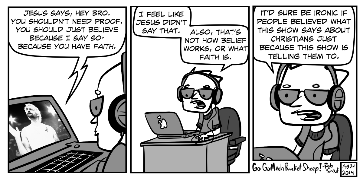 In pop culture, this is a pretty common representation of what Christianity is and what Christians believe. I think it’s an inadequate representation, but I also think it probably lines up adequately enough with what people commonly experience of Christianity that people accept it pretty easily (especially if their experience is only informed by pop culture).