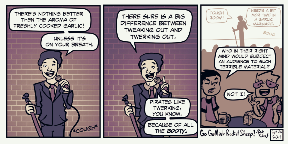 I’d like to be the kind of person where, if there’s ever a microphone and an audience and for some reason there needs to be like 20 minutes filled, I’d have like a ton of original one liners queued up and ready to go. Unfortunately, they’d be of the caliber represented in this comic strip. For all I know, somebody else has already written those jokes. Anyways! Have a great Thursday everyone, and thanks for reading!