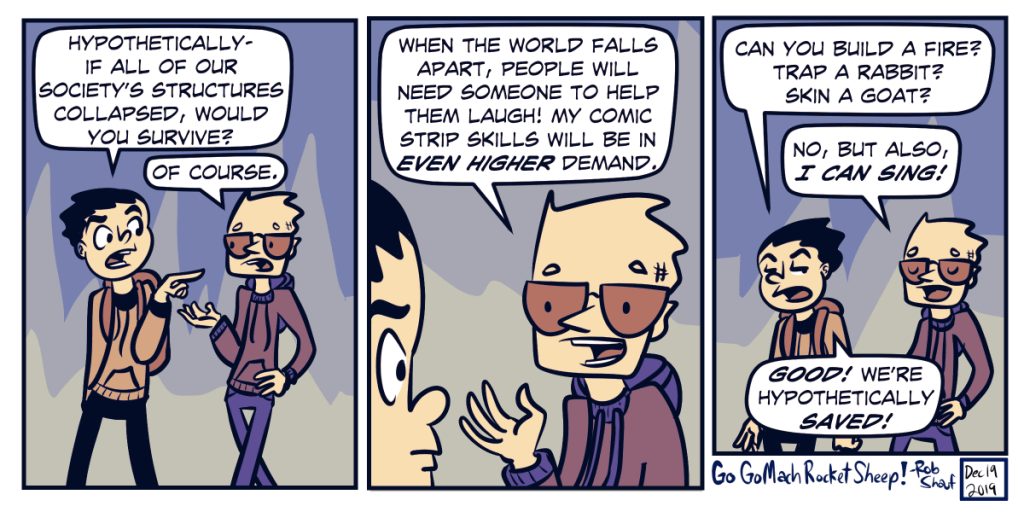 okay, so most of my skills don’t really have value in a post-apocalyptic situation. Time to learn how to skin a goat.