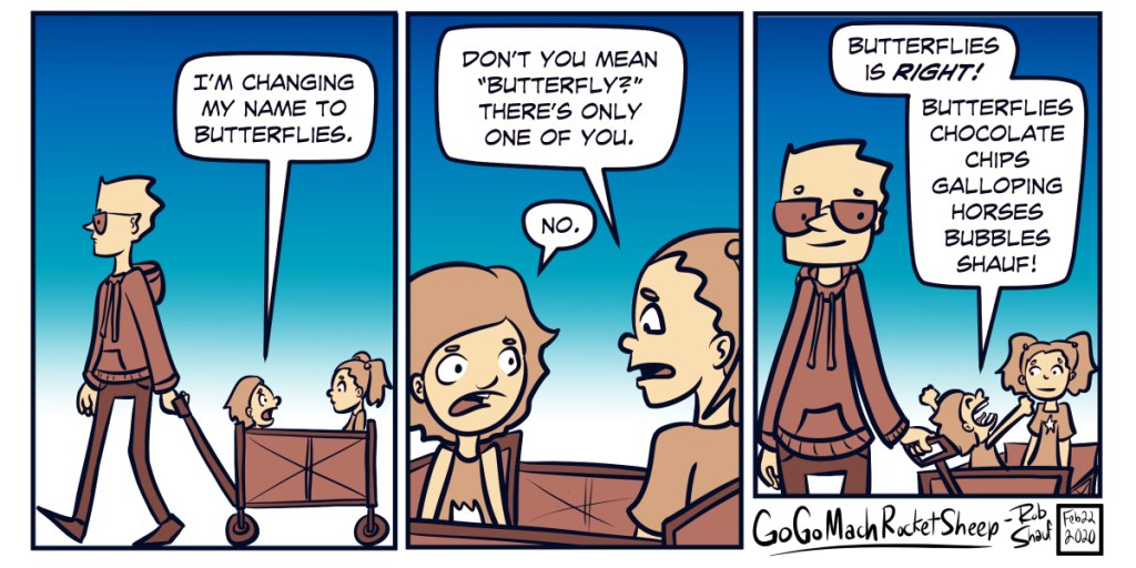 ‘Changing your name’ has been a topic of conversation amongst my kids for the last week or so. The debates have been heated and lively. My youngest had settled on the name in the comic, only to wake up this morning and announce that she has decided to keep the name we had given her at birth. Probably a good call!