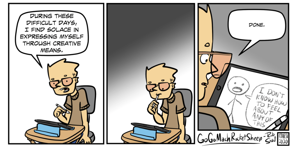 The first thing I feel is “man, this sucks.” And then it’s “I’m thankful that, so far, me and my family aren’t sick with this.” And then it’s “but there are so many who are!” And then it’s “buckle down and do your part so that even more people don’t get sick.” And then it’s “will red robins even be open when this is all over?” Oh man.