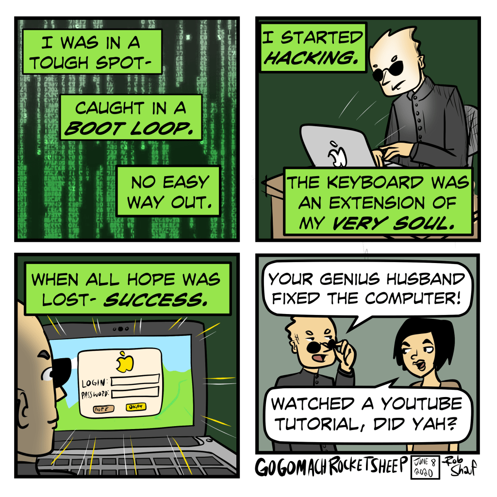 To be fair, it wasn’t as simple as watching a YouTube tutorial. I was upgrading an old Mac mini to El Capitan, but the downloaded on the Mac I was upgrading only downloaded half of the updater for some reason. This meant that, after I did the ol- “clear off and install”, it was stuck in a boot loop! I had to make a USB boot disk with a different computer (thanks YouTube) using the terminal. Anyways, fixing software problems rarely happens on a Mac, so when I manage to do it, it makes me feel like a 90’s movie hacker.