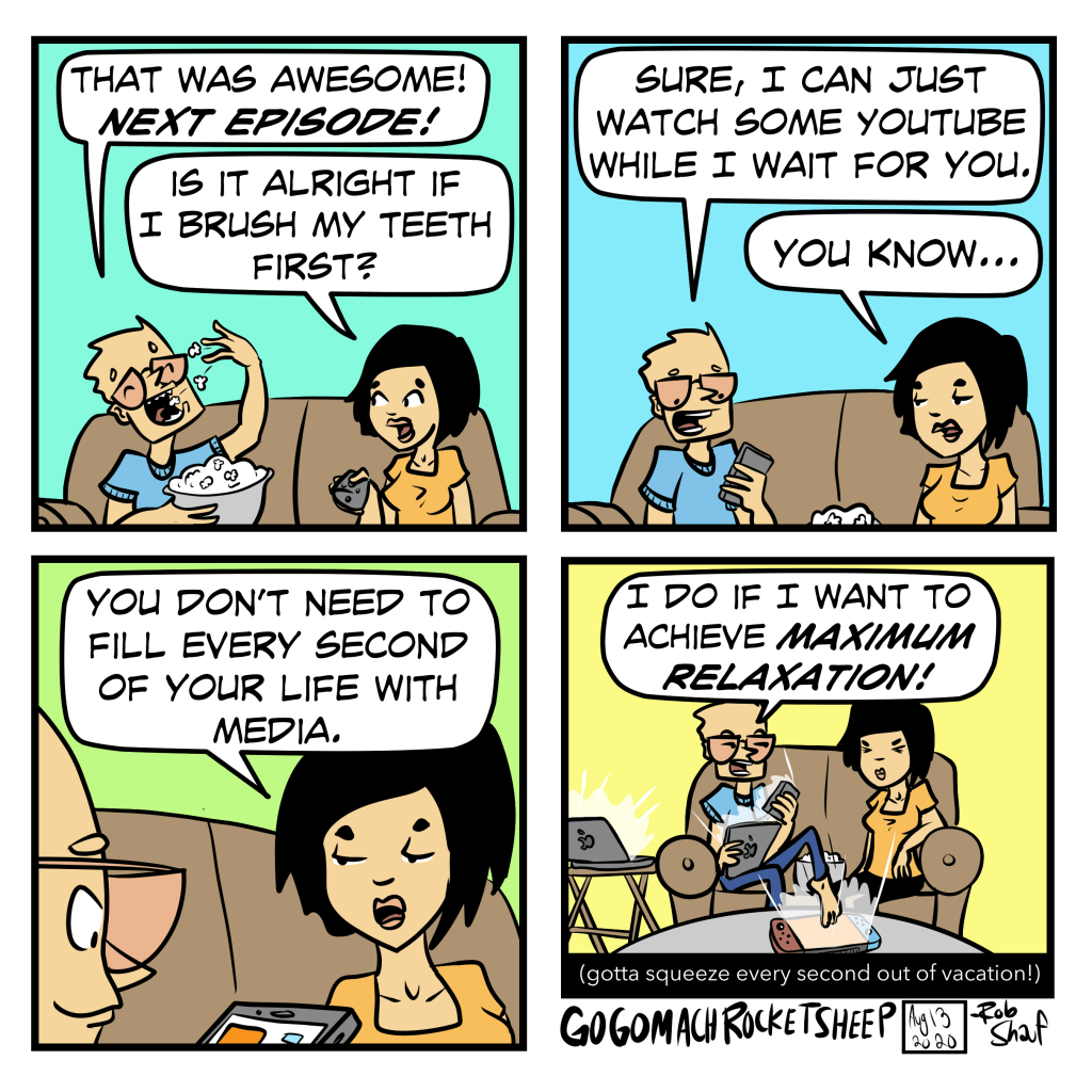 Honestly, there are so many movies and so many comics and so many YouTube rabbit holes I want to engage with, but there are a]only so many hours in the day (and only so much vacation time left!) you really gotta maximize the time spent!