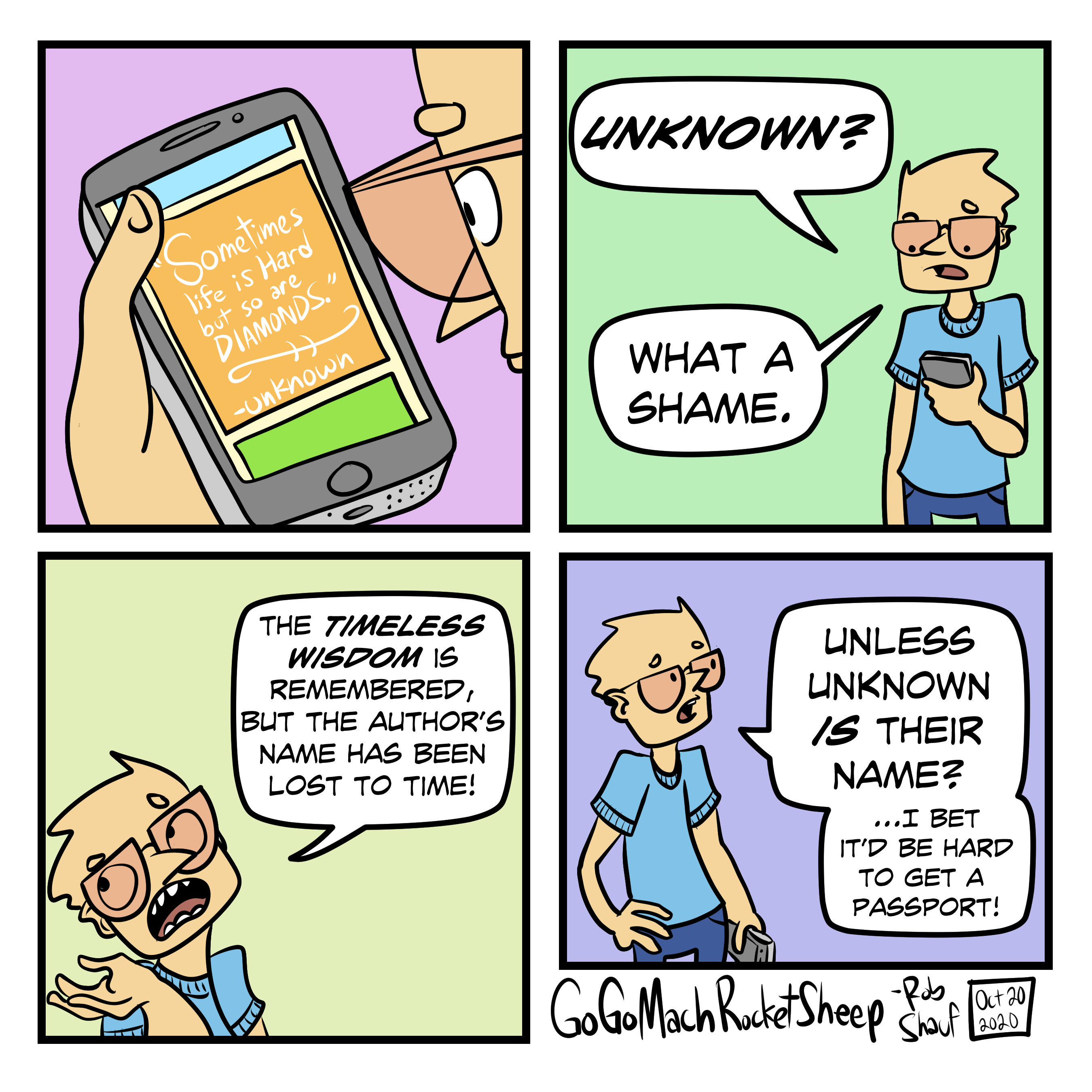 If you want an idea to gain traction, it’s better to attribute it to “unknown” then to attribute it to someone who is an unknown. Why is that? Any time I see a quote attributed to “unknown” I am disciplining myself to assume the worst about the person who said that thing because it’s just as likely as assuming the best about them. Plus it makes it so much more fun!