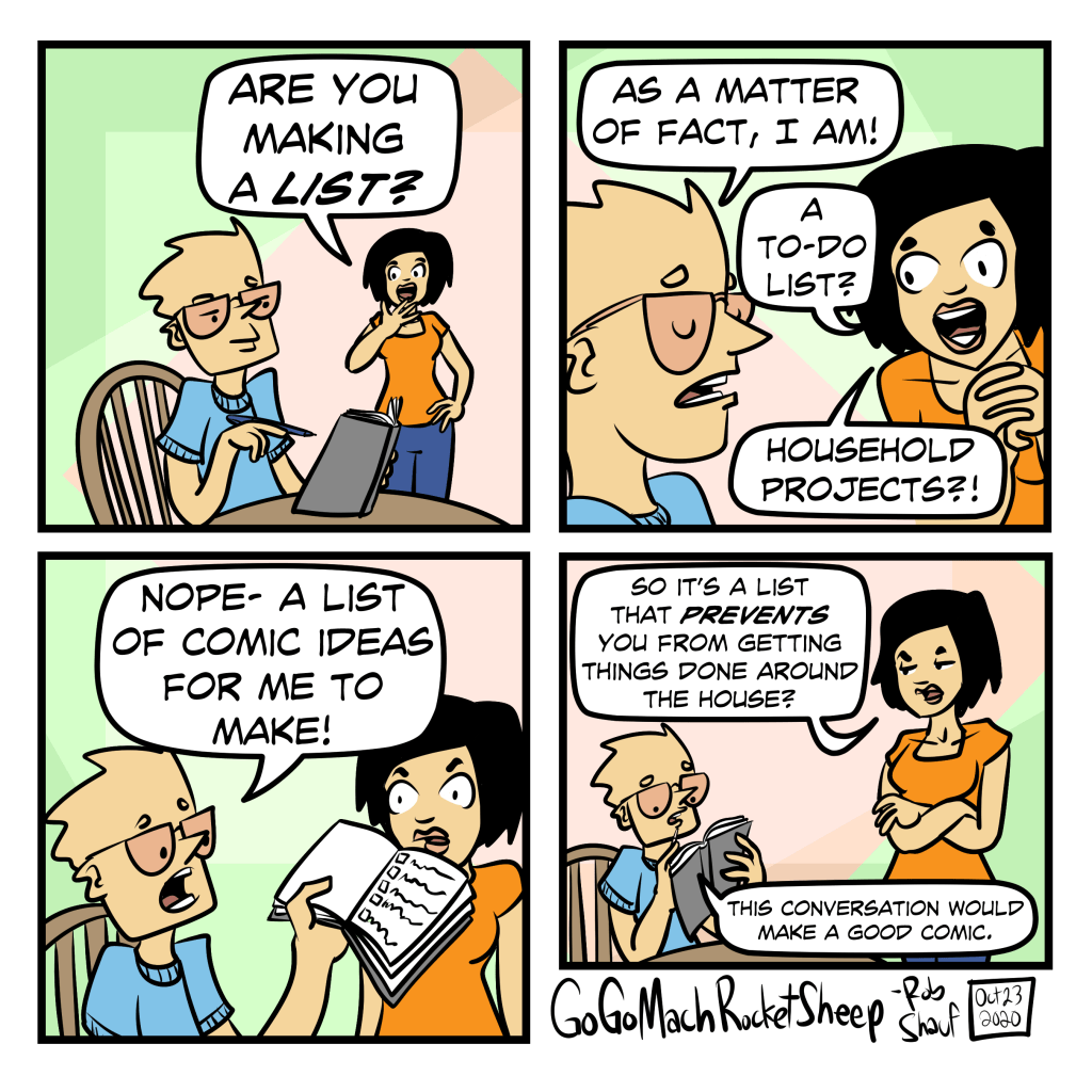 The comic making instinct! I can’t turn it off, you know? I think my daughter actually said last week, “let’s do something crazy so daddy makes it into a comic!” They’re on to me!
