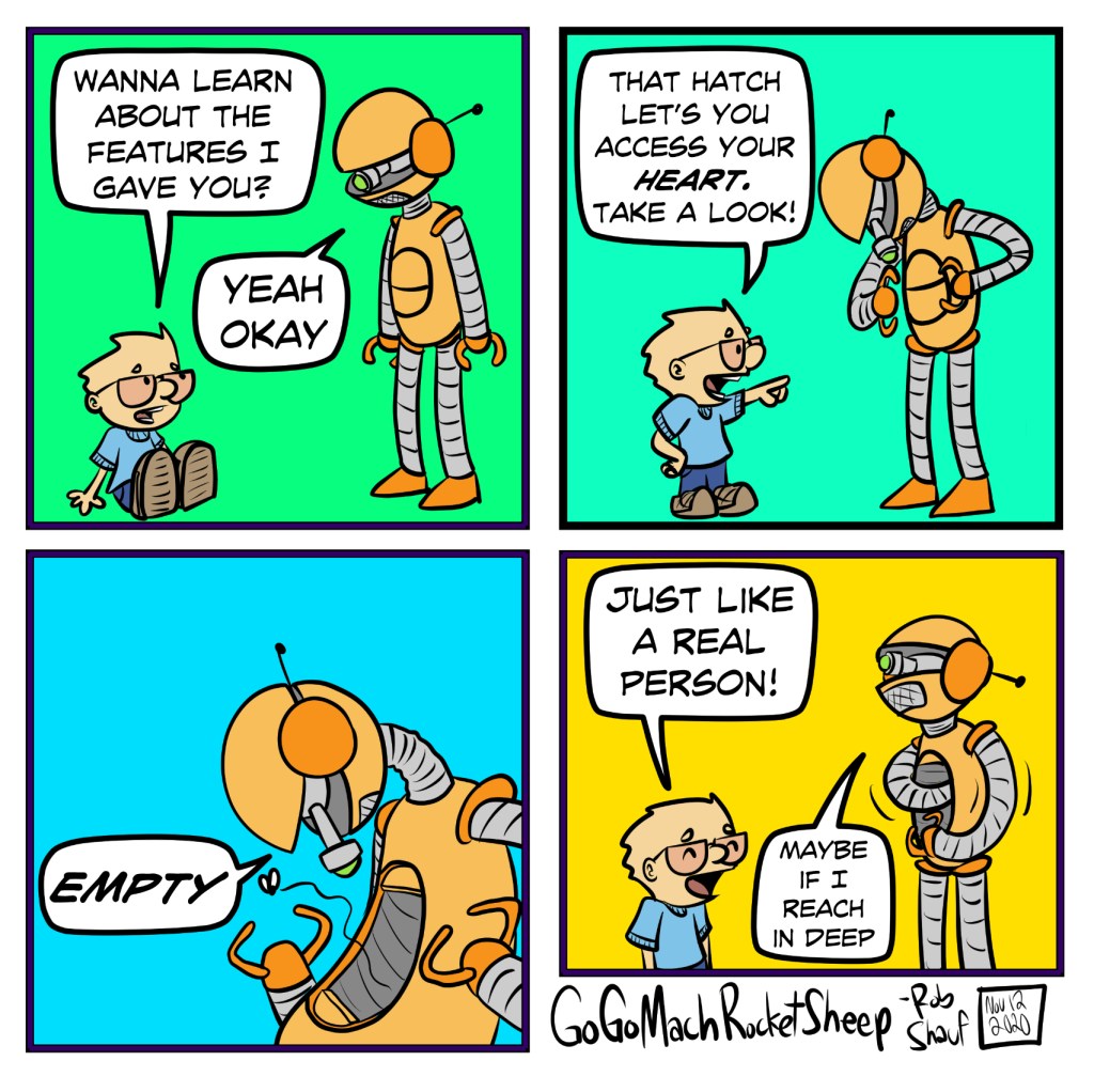 The second episode featuring little Robbie and the bot! I think I will draw these when I don’t have regular gogomachrocketsheep ideas. Thanks for reading!