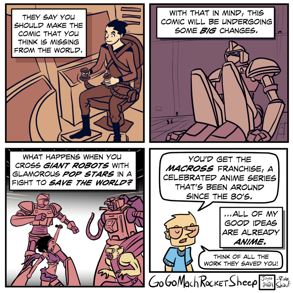 That last comic is a joke BTW- good ol’ GoGoMachRocketSheep will remain exactly what it is: whatever i want it to be at any given moment. That being said, if sweet sweet scifi is your jam, i’ve already made a sweet sweet comic about space ships and robots (although, not popstars yet) it’s called spacechuck and you can read it ON THE INTERNET! I’m quite proud of it and have compiled it into a book, which you can also buy on the internet.
