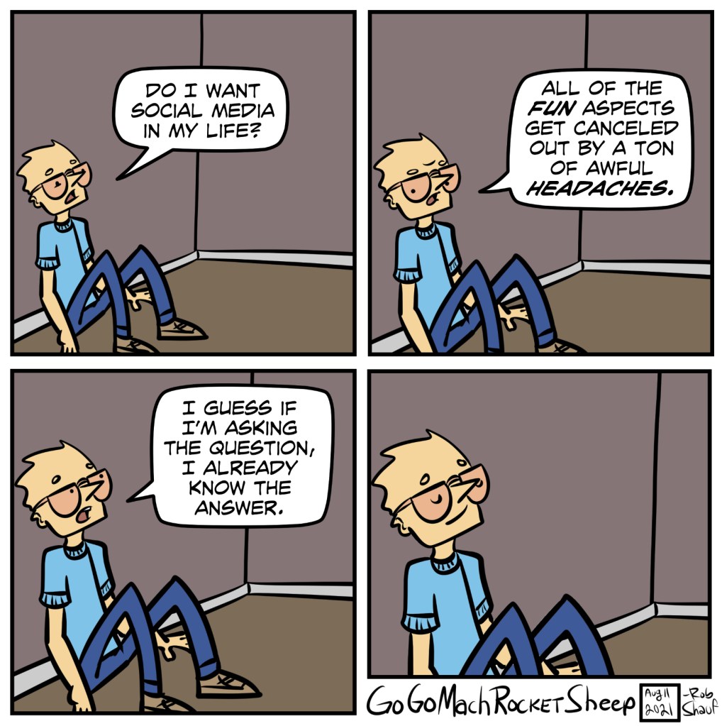 Social media plays a big part of why I get frustrated with making comics. Back in the late 2000’s and early 2010’s, algorithms weren’t as tuned as they are now. If you clicked “follow” or “join page” or whatever, you actually had that content shown to you. But it doesn’t really work that way anymore. It can feel VERY futile when I’m making comics for people to see, but maybe only one or two a month actually make it on to their feed because I don’t want to pay to show it to them.