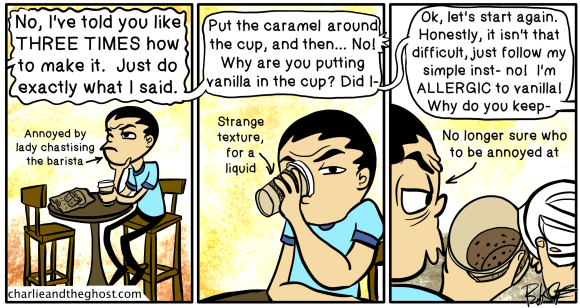 Anyways, it’s time for another archive dive. Last week I put most of the Christmas comics up… This week, we’ll revisit COFFEE! The drink, not the dog.