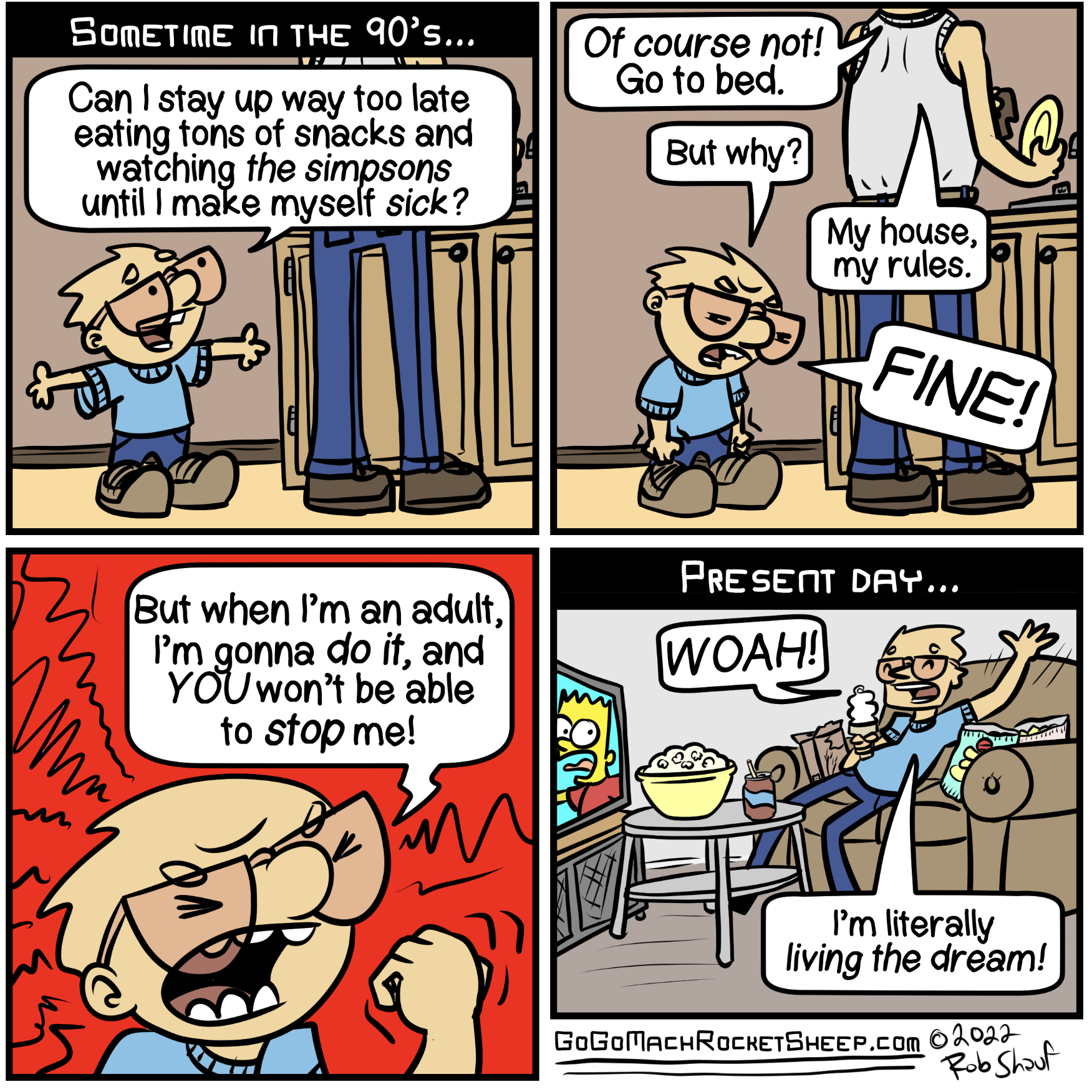 Anyways, I DO enjoy making music and recording videos too though. You read a comic strip, it takes like 10 seconds. You watch a video- it takes a bit longer to engage with it, you can watch it more than once if it’s entertaining, etc etc.