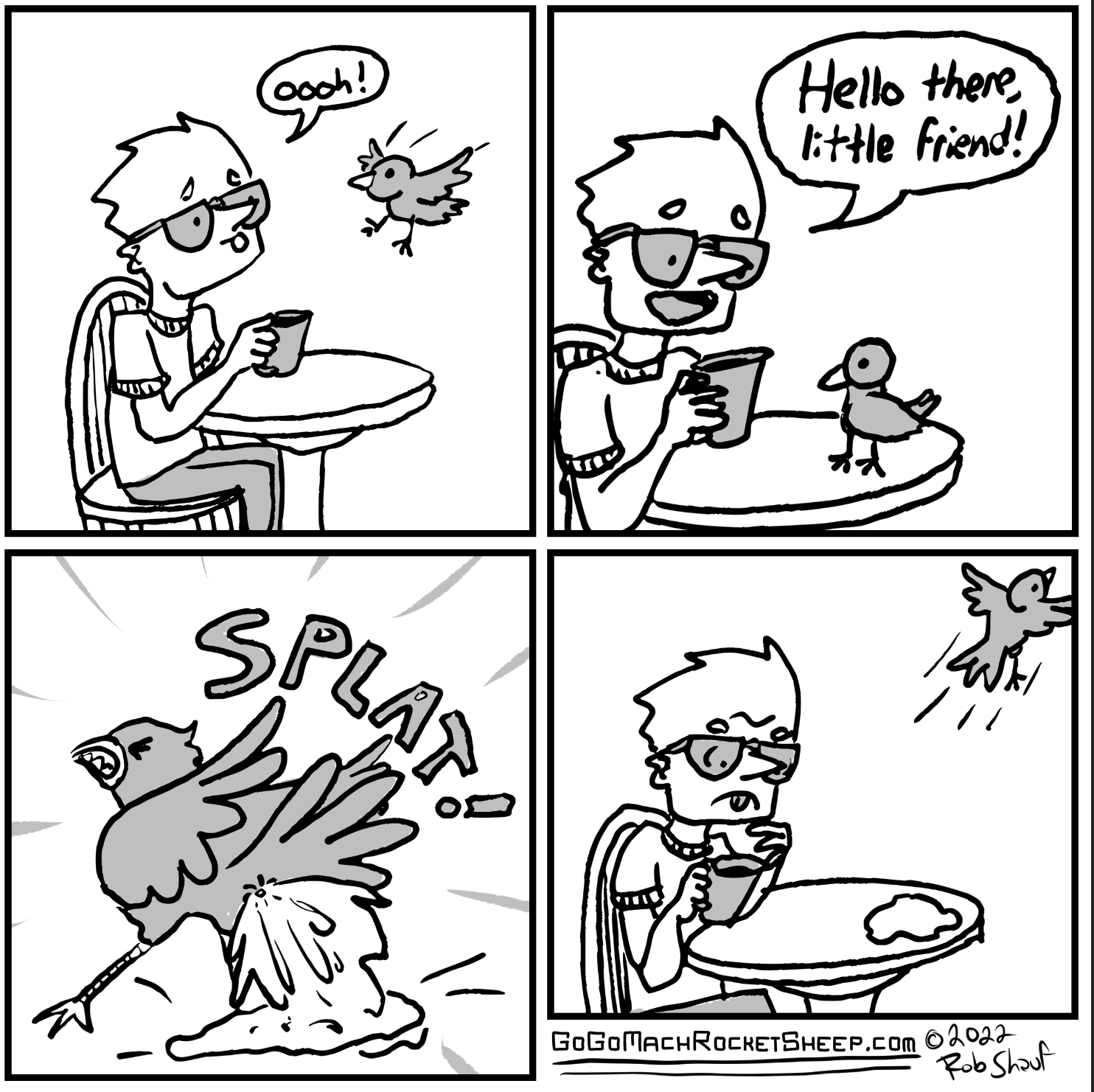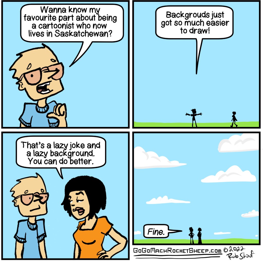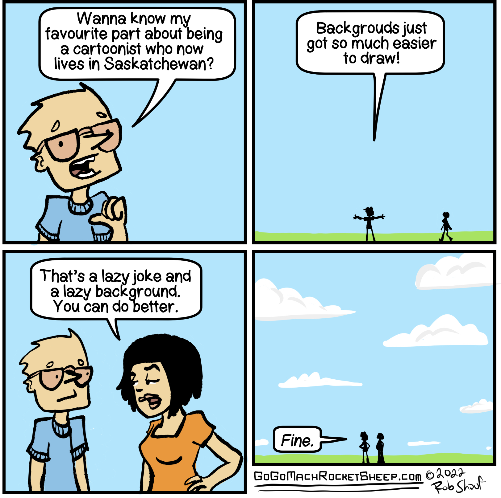 This week the weather in Saskatoon has been absolutely gorgeous- pure summer bliss, 32 degrees C in the sun, nice and cool in the shade. That means we’ve been spending quite a bit of time outside, and that also means that the last couple of comics you see here were drawn on the reMarkable2 tablet. I have a bit of a love-hate relationship with that tablet when it comes to making art- I was mostly frustrated with how cool the drawings look on the tablet itself, and how difficult it was to get the drawings OFF the tablet in a way that looked anywhere-close to as cool. BUT! They’re a couple of software updates past the last time I tried exporting stuff, and I’m happy to announce that it now looks alright. It’s still a slow process to make anything that looks good on it, but when you’re outside in the sun sipping coffee and casually drawing a comic, efficiency is the last thing on your mind!