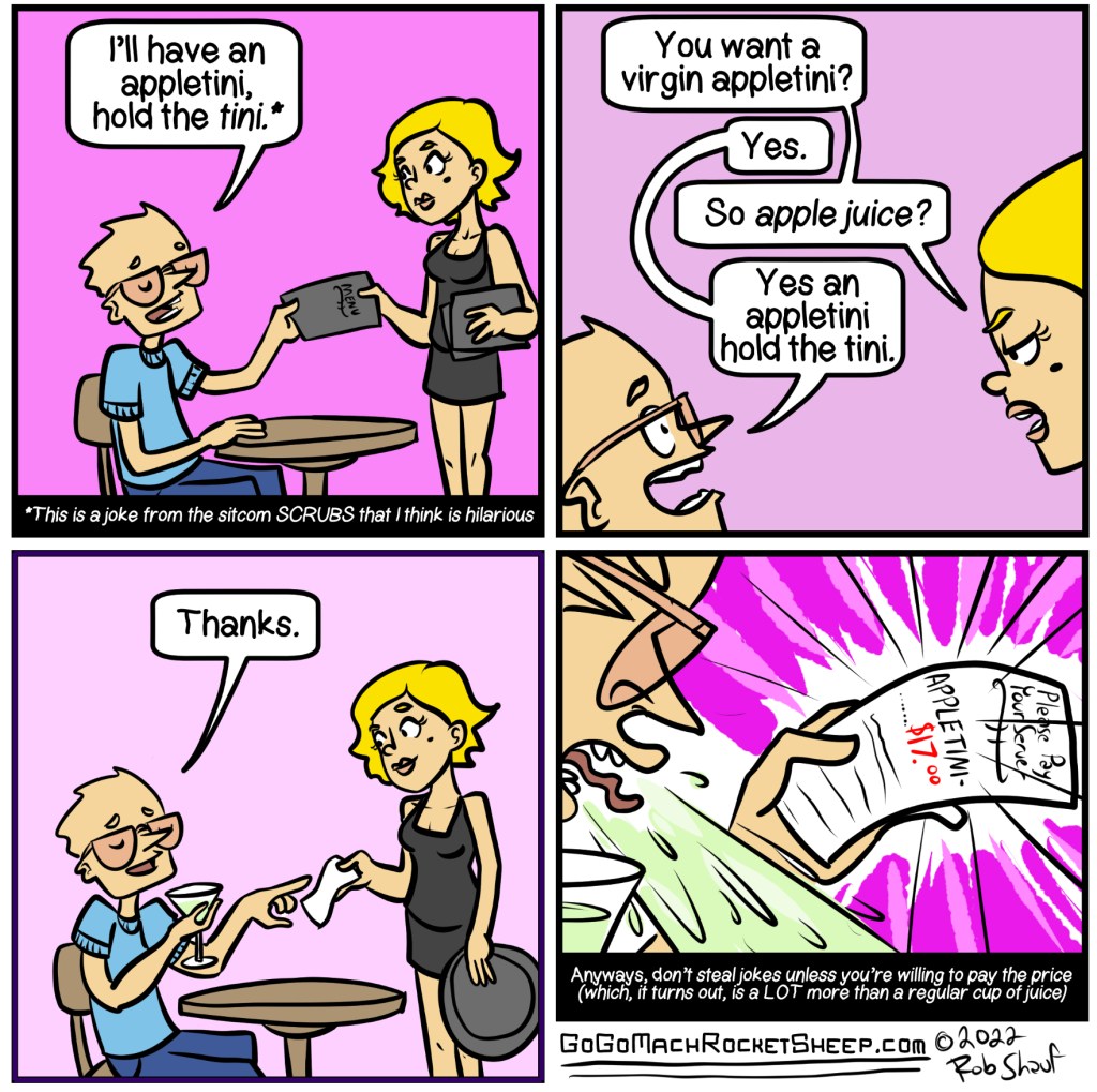 Three out of the four comic strips I made have ‘look at this specific number’ as a part of its gag. I guess I had numbers on the brain? The hot dog one is one of my favourites I’ve made in a long time, jam-packed with dumb little side jokes.