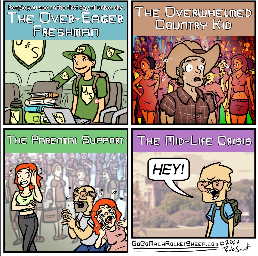 I felt like I didn’t get around to making that many comics this last week, but it looks like I made five so that’s pretty good. Classes officially started Thursday, which means syllabi for all but one of my classes has been made available, and… Well, I’m gonna be busy- stupid busy. But that’s good, gotta get that DEGREE you know? Usually when I’m busy is when I have the best ideas for comics, cause that’s when I don’t have time to actually make ’em. haha!
