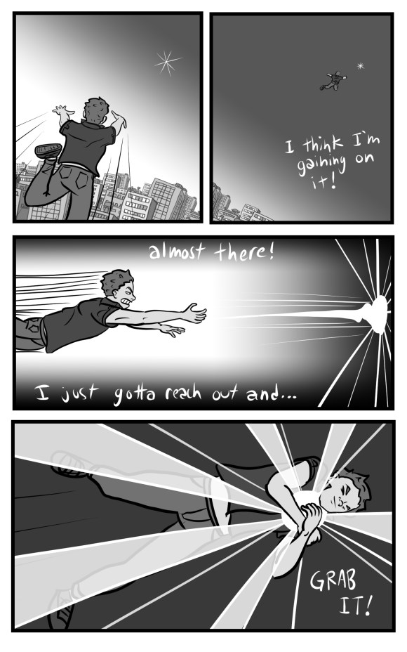 Ahh! Those are fun to make. Aren’t short stories fun? They are like their own little worlds. And short comic stories are a TON of fun, because they’re so quick and effective! (not to make though! haha) I could write out that story with only words in a couple of hours and it would take you ten minutes to read it, but with a comic, you get the idea in under a minute (although it takes at least a couple of days to make it). Is it better to paint pictures with words, or show pictures? In both cases I think it’s about inspiring the imagination.