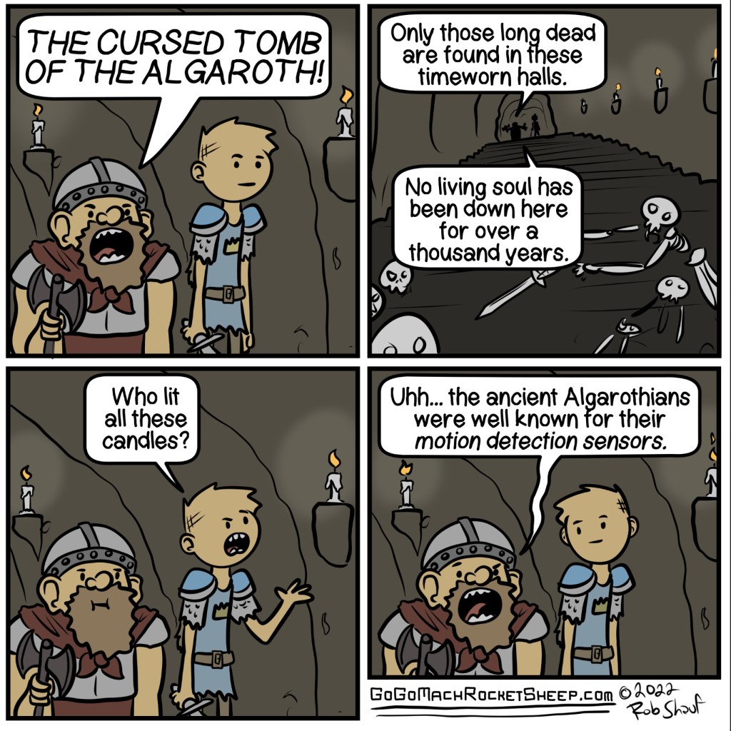 It’s always a pet peeve of mine when fantasy video games have sealed unexplored tombs with fresh apples in barrels and fresh lit candles everywhere. Some redditors were quick to point out that the undead care for the tombs, but I mean… why would that be the explanation? They don’t eat. Also, am I to believe they light candles only to immediately bury themselves or get back in their coffins so they can hop out and scare me when I walk by? Others said the apples came from other explorers who left supplies for those who would come after. But it was a sealed tomb! SEALED I SAY! Pray-tell, HOW did those other explorers get in without possessing whatever stupid ancient artifact I randomly found buried under a tree that gave me exclusive access to the MUD GATE? HOW?! Whatever- nerd rant over.