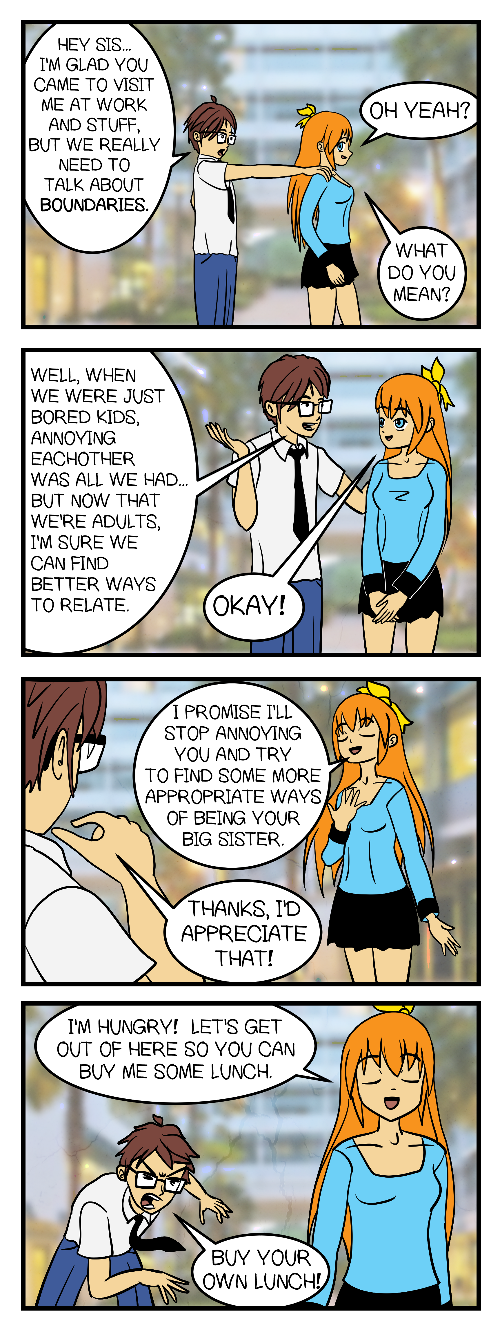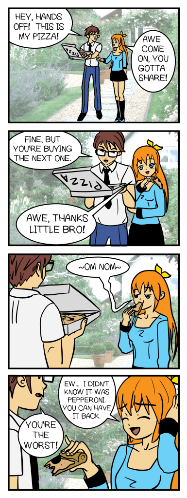 ALRIGHT! Here’s an archive dive of something real old and real weird! For a while I was trying to do a more manga style, and I thought I had a way to do it. So I made a weird little comic about a brother and a sister. Here it is!