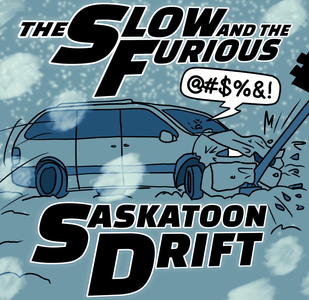 No, I didn’t crash. I was just driving around watching people slip and slide and it made me think of Initial D, which made me think of Tokyo drift, which made me think it’s just kinda funny how winter turns everybody into a drift racer whether they want to be or not. Also, it’s a bit of a pun, because you’re likely to find yourself in a snow drift if you’re not careful. Really it’s just sort of a cheap jab at the fact that it’s always a bit slick if you don’t have winter tires.