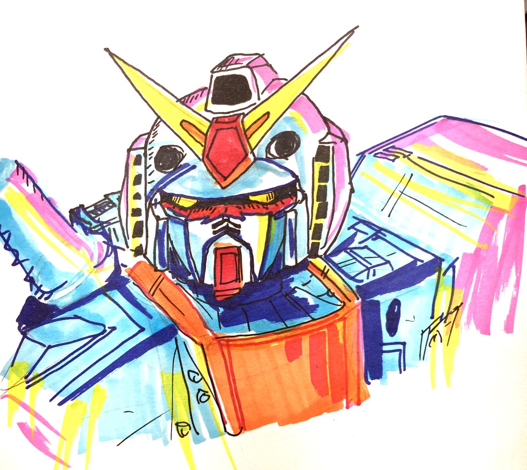 This week, we’re drawing MECHA! Because mecha is cool. I got some cheap alcohol based markers and wanted to try doing my own version of a pretty popular Gundam pic that’s been floating around gunpla circles for a long time. Here is the hard mode: