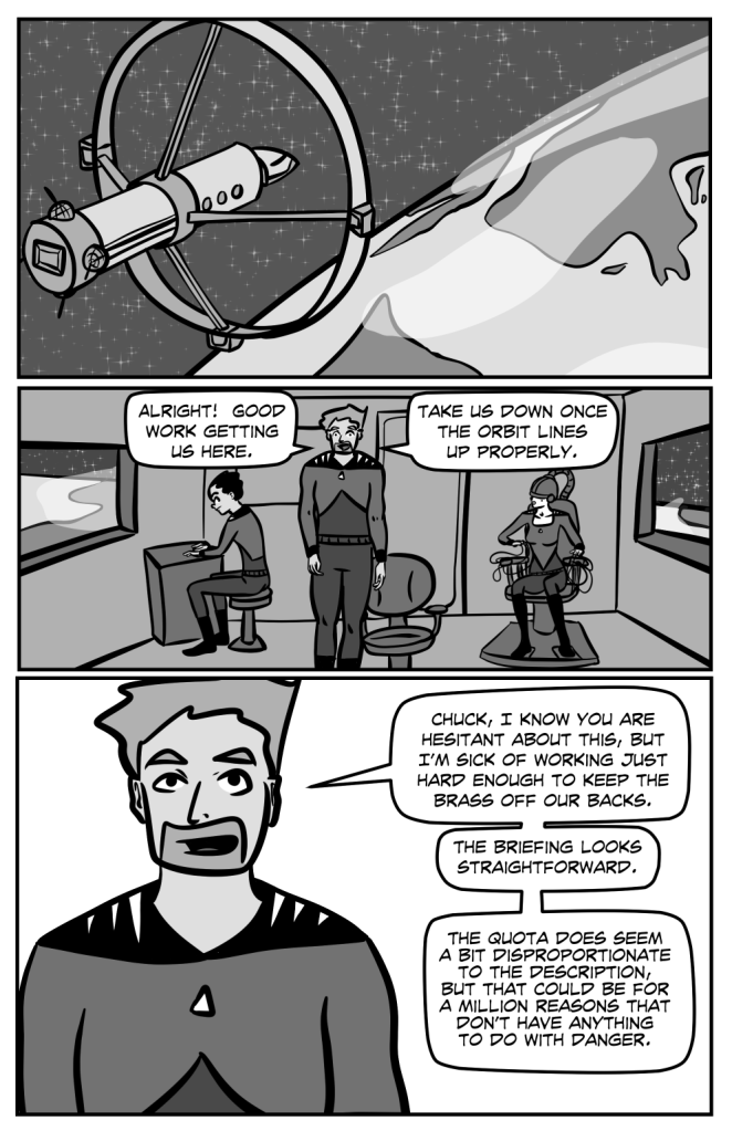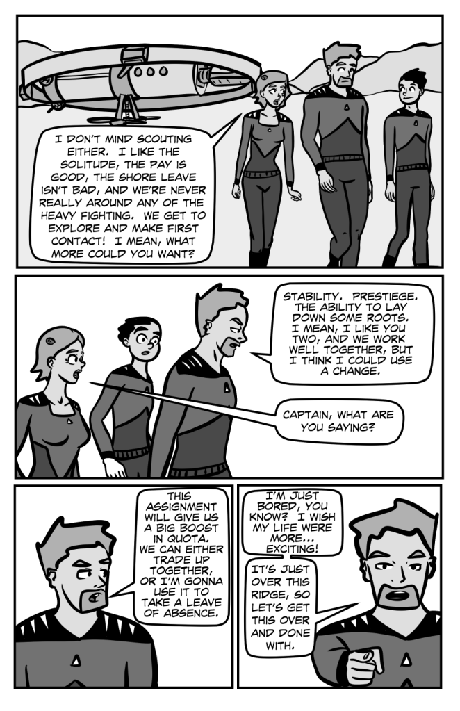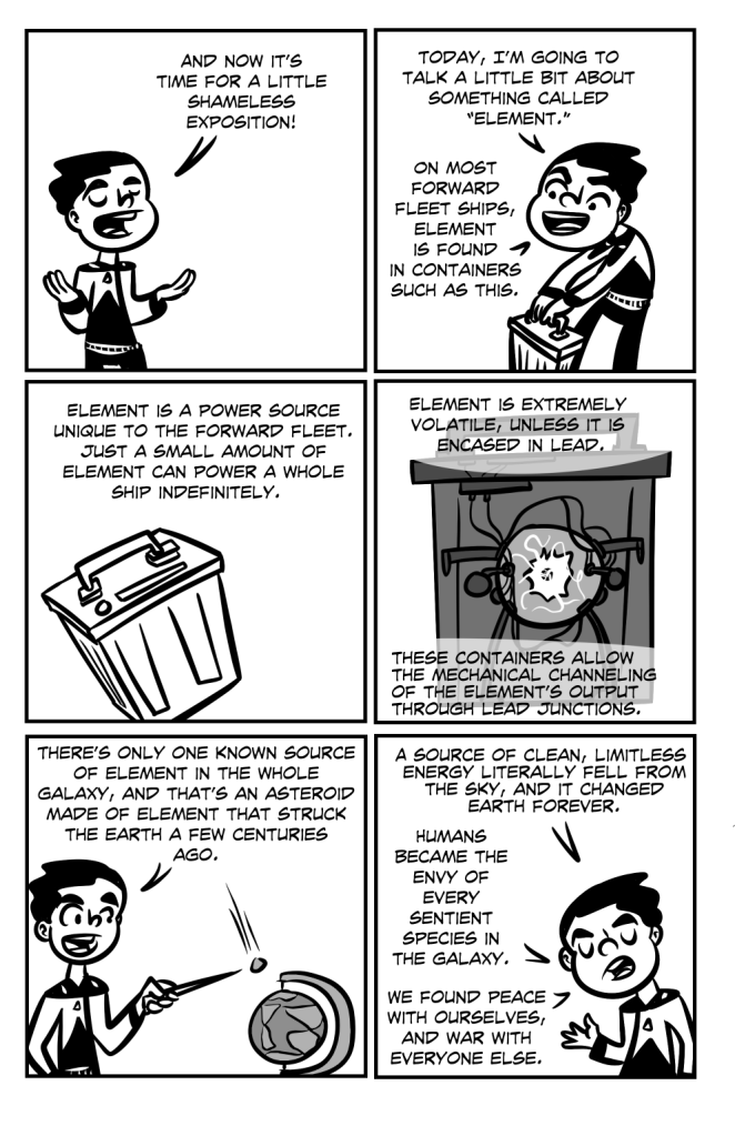 As a part of my website redesign, I’ll be moving my SPACE CHUCK chapters over to the website proper. I started making this comic in 2018, posted the chapters throughout 2019, and right as I was finishing it up, they announced “the lower decks” which was essentially the niche space I was hoping to fill: a comic/cartoon answering the question “what if Star Trek was funny?” And I LOVE the Lower decks. Throughout the course of me developing this story, it took on a bit of a life of it’s own. There are 10 original chapters that I gathered into a graphic novel, and then there are a bunch of short stories as well that I’m excited to post for (basically) the first time! I hope you’ll read along with me. 😀