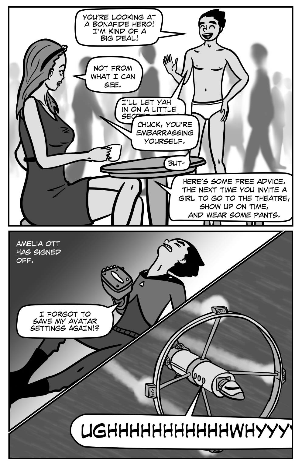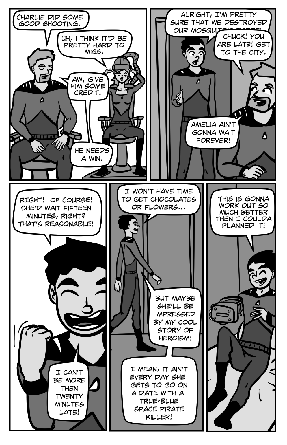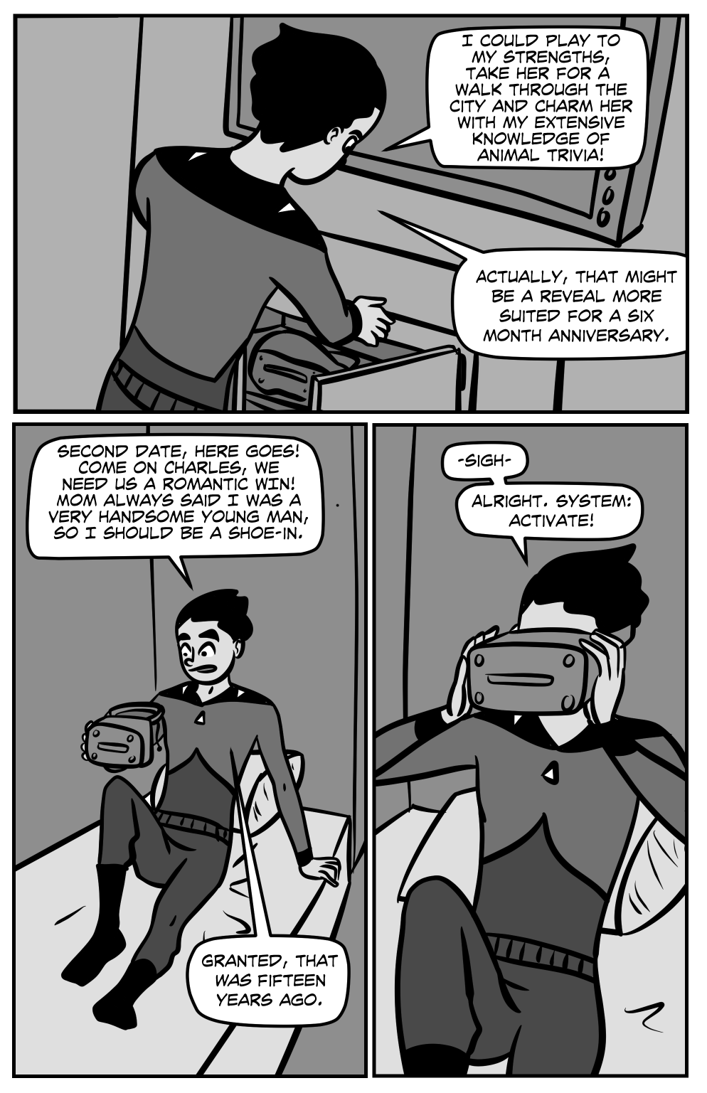 I really like these Space Chuck stories. I gotta say, one thing I would change were I to re-write this story is the optimism of VR being a thing that would make people scattered across the galaxy feel like they are still connected. Post-two-years-of-pandemic-and-isolation, I can safely say that no matter how good VR is, if it’s a headset, it will NEVER substitute for proper in-person social interaction. But scifi is allowed to dream, so it’s all good. I just think that’s the one area we’ve all had a bit of experience with, and speaking for myself, I would prefer not to have it as a part of our future.