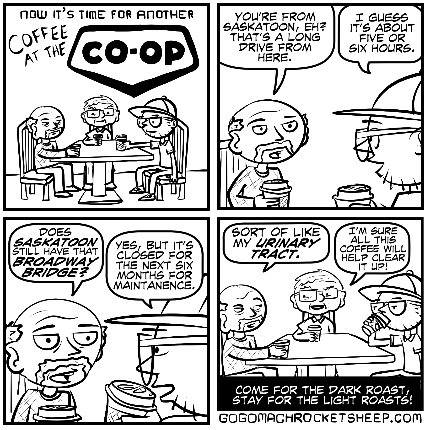 Thanks so much for reading these comics and this blog post! I just got back from doing BOLDTCON in Humboldt, Sask, and it was a lot of fun (that link is to an article about the convention, and there’s a brief interview with me in the article!). Sold some books, met some rad people, good times all around!