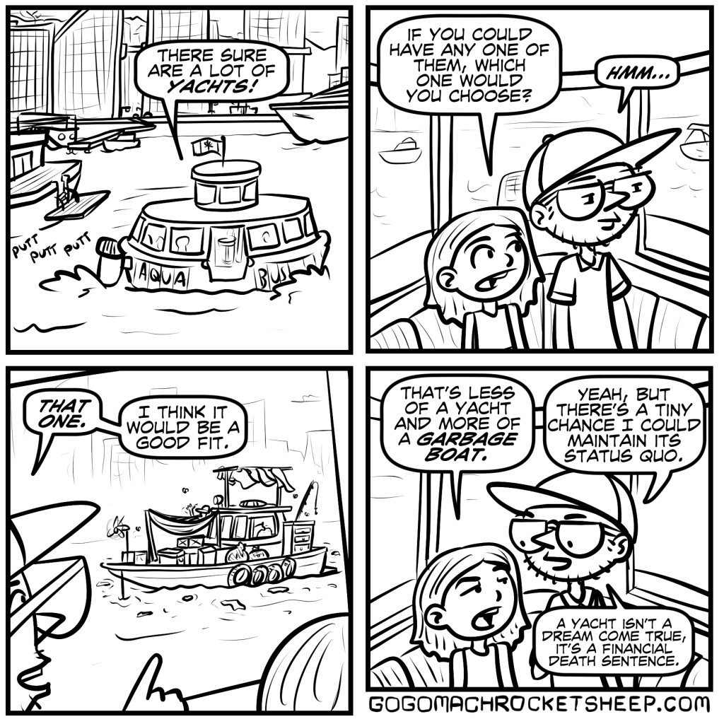 I have a limited amount of time to make comics in a day… Sometimes I prefer to make gag comics that can get finished in that limited amount of time, and sometimes I prefer to spread that time over months and make something bigger and more substantial. I think I’m coming back around to wanting to make something bigger again!